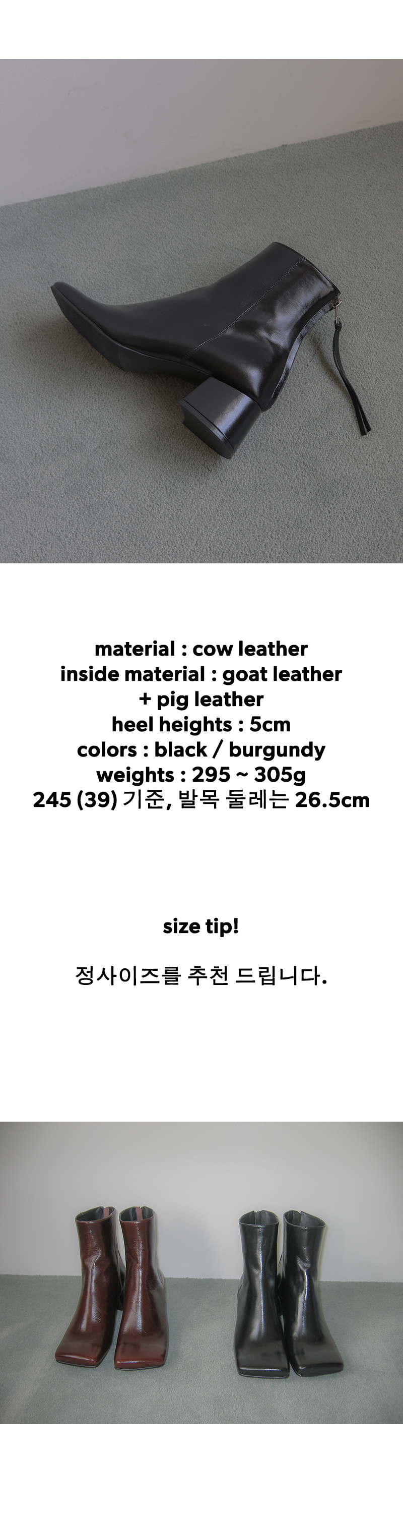 2.수제화 특성상 1:1 주문 제작 방식으로 고객 변심에 의한 교환이나 반품은 불가능하므로 신중한 구매를 부탁드립니다.