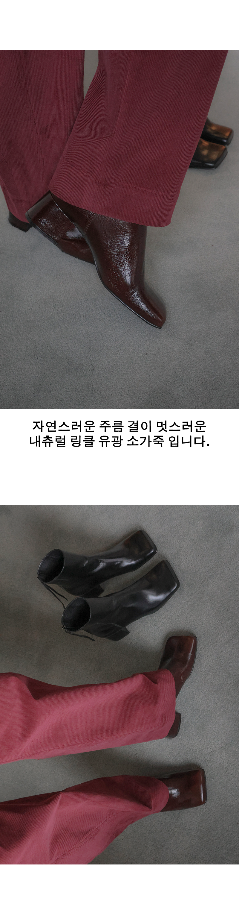 3.가죽 소재 특유의 미세한 스크래치, 주름, 컬러차이 등은 교환 및 환불이 불가합니다.