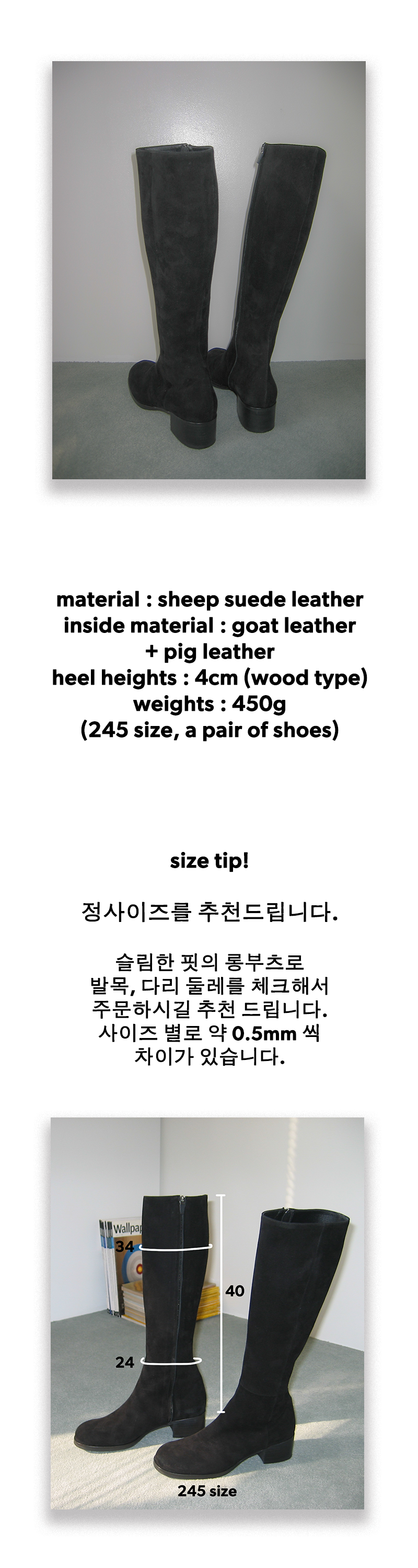 3. 사이즈 교환은 제품의 색상변경, 발볼 등 디자인 수정을 하지 않은 경우에만 1회 가능합니다. (배송비 왕복 6,000원 동봉 또는 계좌이체 후 착불로 보내주세요.)