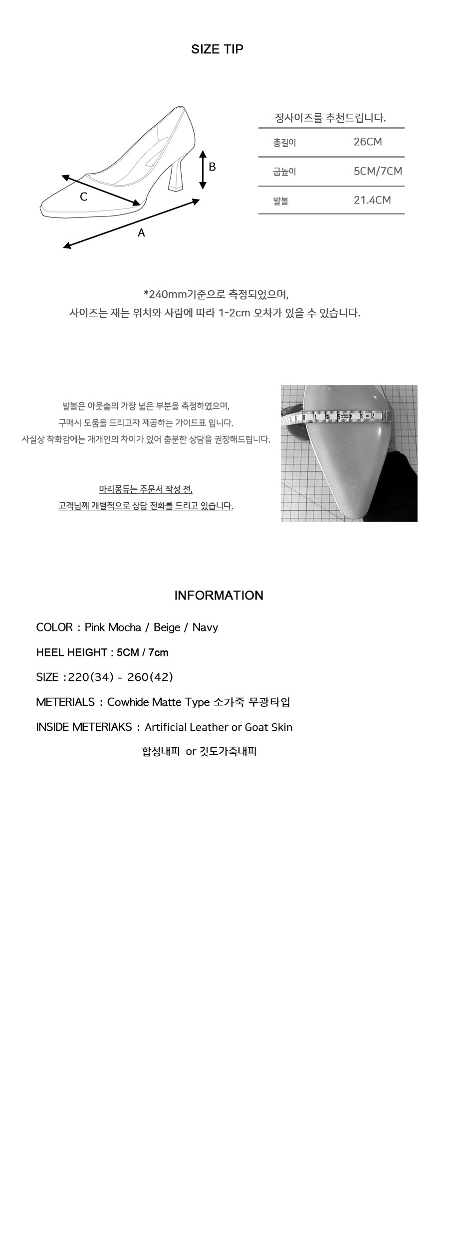 2.수제화 특성상 1:1 주문 제작 방식으로 고객 변심에 의한 교환이나 반품은 불가능하므로 신중한 구매를 부탁드립니다.